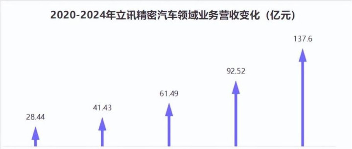 2024年,立讯精密再出大手笔,斥资41亿人民币收购德国百年汽车线束巨头莱尼集团(Leoni AG)50.1%股权及其全资子公司Leoni K100%股权,成功切入全球顶级车企供应链,加速汽车电子全球化布局。