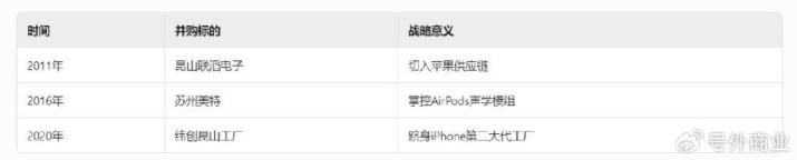 有了苹果的超级大腿撑腰,立讯精密在资本市场如鱼得水此后十年,立讯精密通过收购不断扩张版图:2020年:收购江苏纬创、昆山纬新,进入iPhone整机组装,2023年iPhone 15 Plus超60%订单由立讯完成。2021年以60亿收购日铠电脑,拿下iPhone侧键和MacBook金属中框业务。