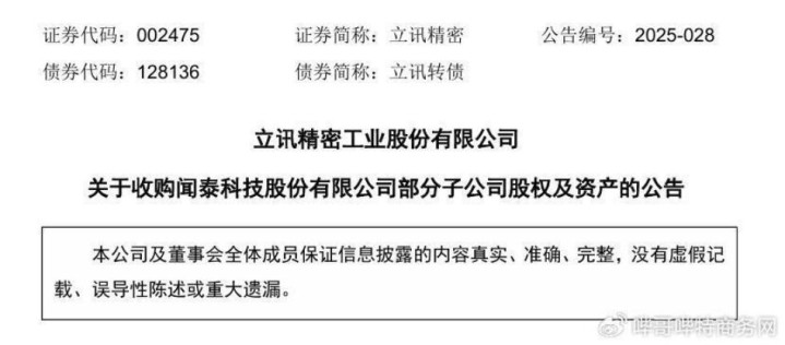 图/立讯精密公告