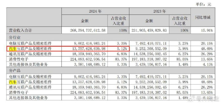 立讯精密已从传统的消费电子连接器龙头,成功转型为横跨消费电子、汽车、通信的多元化精密连接器等互连方案制造平台。其连接器业务在这三大领域的表现,清晰地勾勒出连接器行业的发展路径。