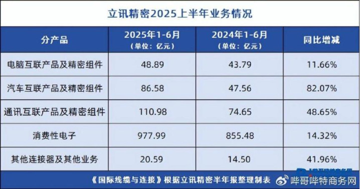 ②(最新出炉!连接器龙头立讯精密半年报解读 新浪财经2025-08-27 来源:哔哥哔特商务网)