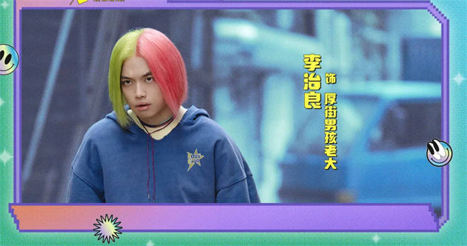 开心麻花演员李治良此次在片中饰演厚街男孩中的老大,发型同样极具特点,一半粉一半绿,可谓是当时“非主流”的代表。